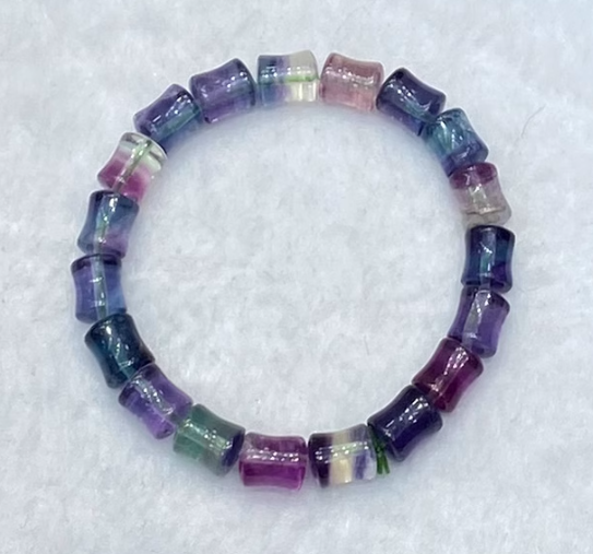 GD - Bracciale in fluorite blu e viola con design a segmenti di bambù
